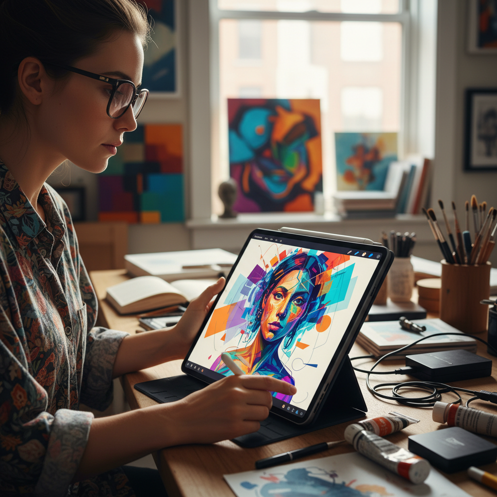 - Dodaj elementy abstrakcyjne: Kolorowe plamy, geometryczne formy, cienie – eksperymentuj bez ograniczeń.