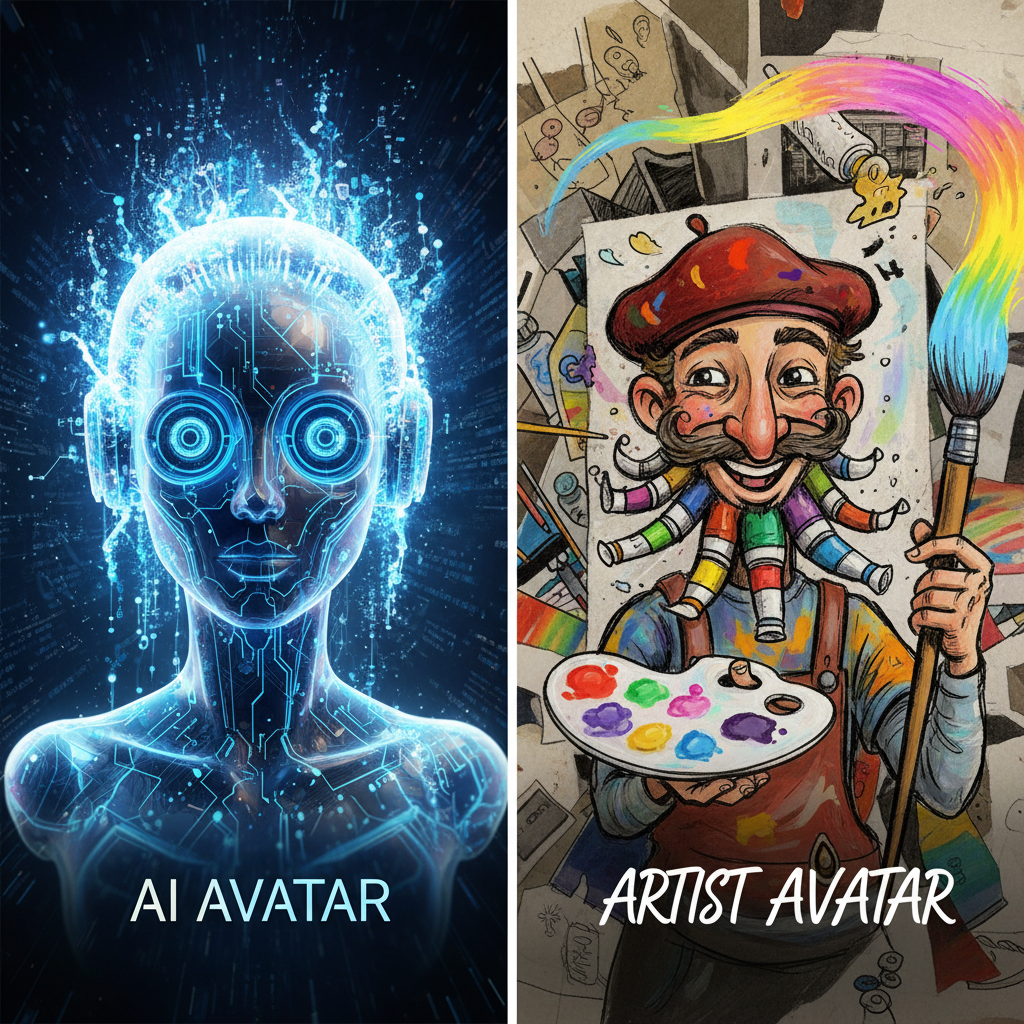 Konfrontacja AI i ludzkiego artysty to starcie dwóch światów – maszyny i wyobraźni. Według badań Solveit, 2024, AI generuje avatar szybciej i taniej, ale nie zawsze trafia w indywidualny styl odbiorcy.