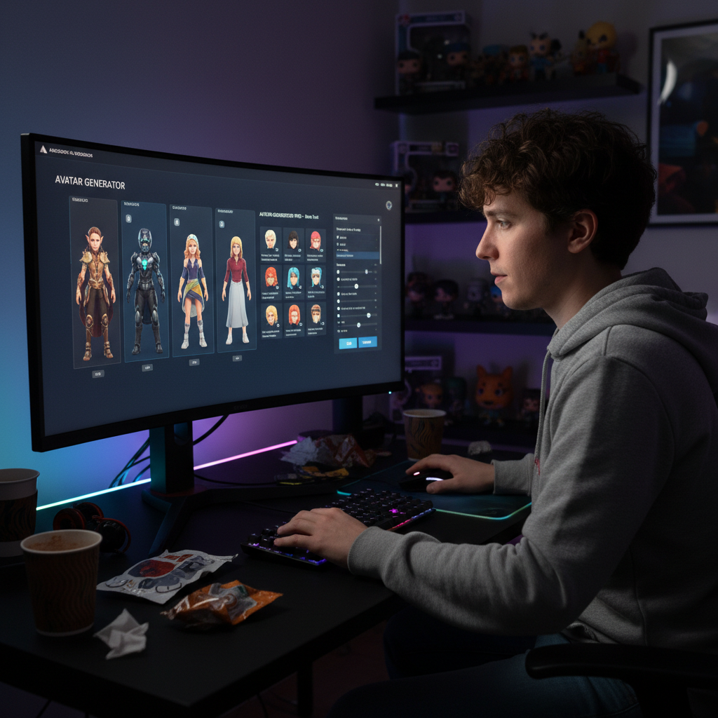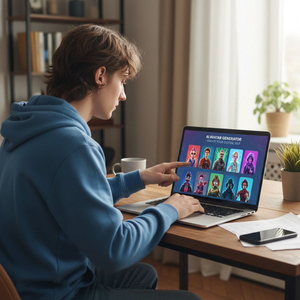 Realistyczne zdjęcie użytkownika wybierającego styl awatara na platformie online.