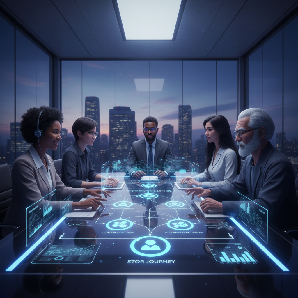 Zdjęcie: agencja kreatywna prezentuje spersonalizowany awatar AI podczas spotkania z klientem. Przełamywanie schematów w digital brandingu.