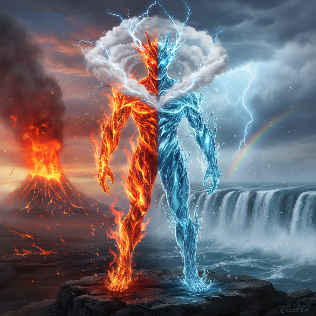 Awatar hybrydowy to gra kontrastów – dynamiczny ogień spleciony z melancholijną wodą albo stabilna ziemia przełamana powiewem powietrza.