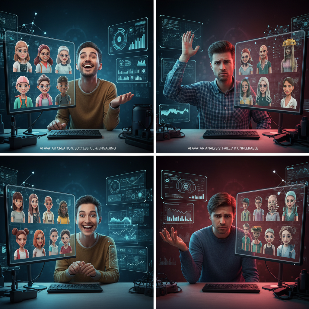 Porównanie reakcji odbiorców na różne wersje awatara — np. poprzez ankiety lub analizę interakcji w social media.